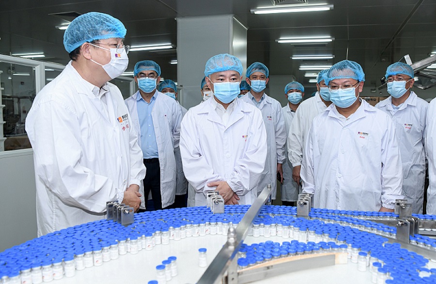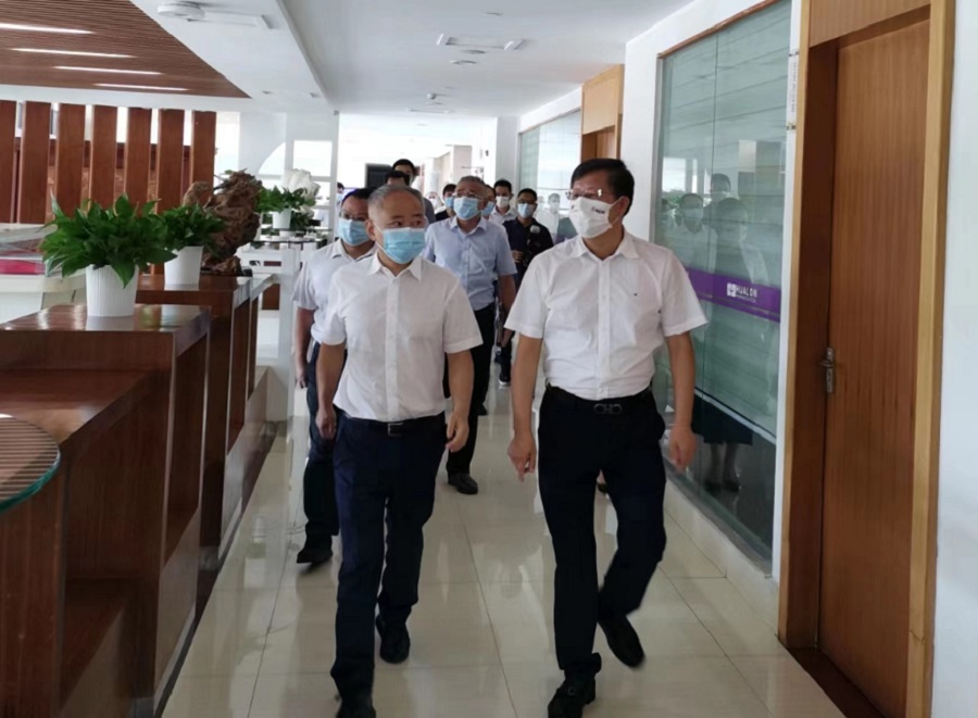 9月5日上午,??谑形睍洝⑹虚L丁暉帶領市政府相關部門主要負責人來到皇隆制藥調研。